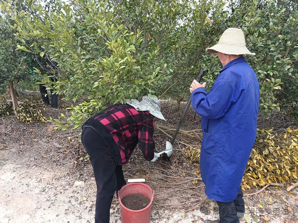作为一家专注于山茶油产业十四年的企业,湖南九丰深知合理施肥对油茶树生长及山茶油品质提升的重要性。从业十余年的“老班长”——基地高工彭庆平带着他的“小分队”,分工明确、有条不紊开展工作,现场呈现一派忙碌景象,“今年订单比较多,有些订单甚至排到了年后,从现在起必须打起十二分精神,从林地清理、选苗种苗、施肥浇水等,把好每个环节时间和质量关,并加强后期管理,不放过任何一个细节。”彭庆平表示。